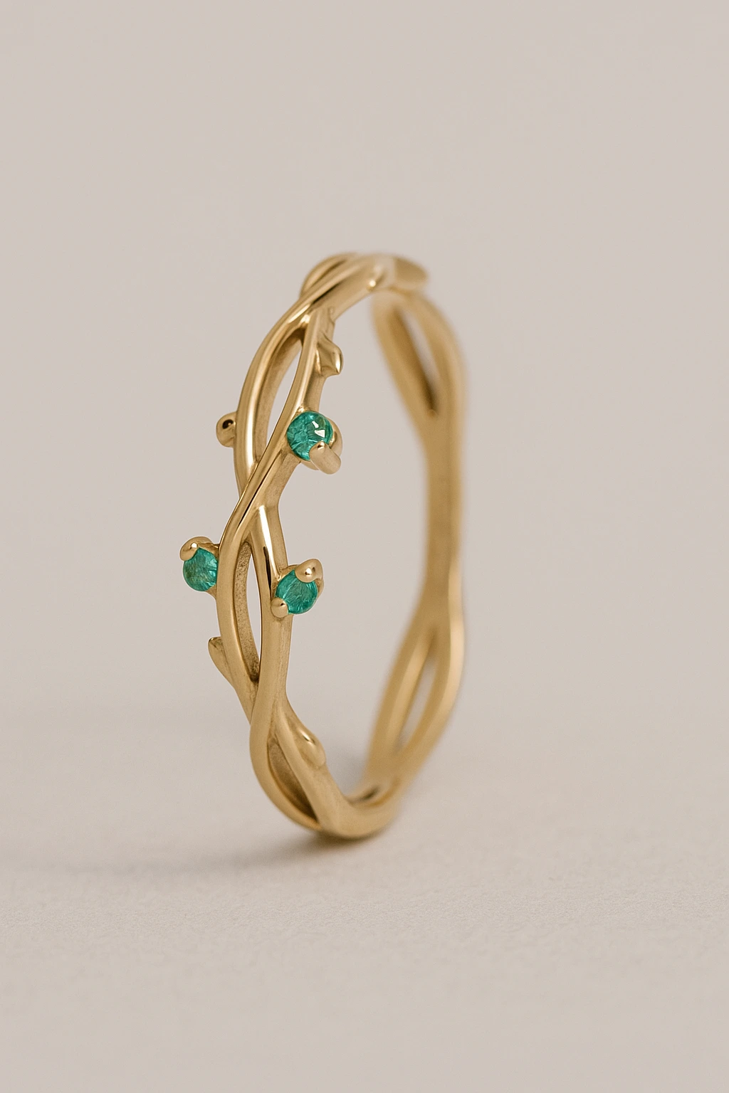Una celebración del renacimiento perpetuo. El Anillo Primavera en oro de 18k evoca la delicadeza de las primeras hojas, con sus múltiples bandas de esmeraldas que simulan la luz filtrándose a través de la vegetación. Es una joya de elegancia orgánica, un tesoro del Giardino Segreto que encapsula la belleza floreciente de la naturaleza en un diseño atemporal y sofisticado.